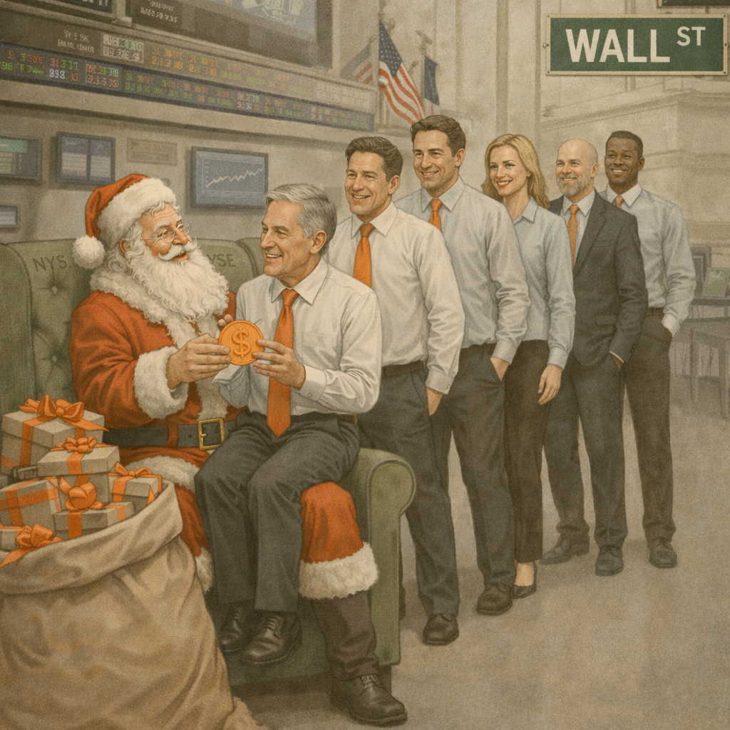 Julenissen med kosestund på Wall Street