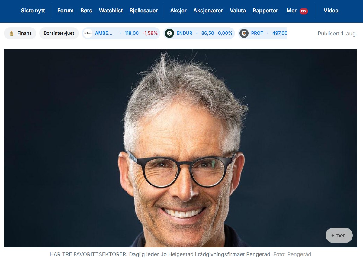 I Norge peker Helgestad spesielt på Endur, som han mener viser tegn til en positiv vending etter en periode med volatilitet og ustabile regnskapstall. Han mener langsiktige investorer kan bli godt belønnet. Protector Forsikring får også skryt – både for sterk kursutvikling siden 2020 og for solid vekst i inntjeningen, til tross for aggressiv ekspansjon. Her advarer han dog om at aksjen kan være høyt priset og at det kan kreve tålmodighet for å hente videre gevinst.